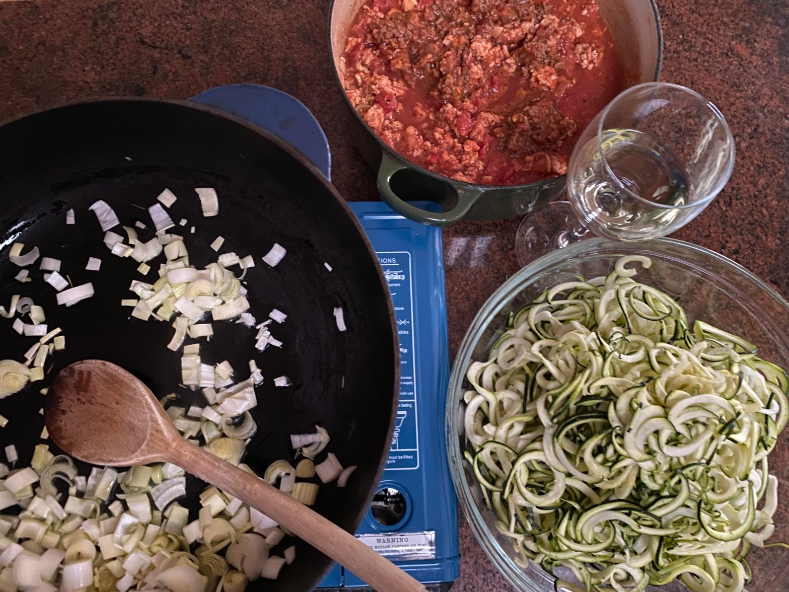 I have renewed my love of our butane camp stove and pre-prepared Bolognese sauce!
